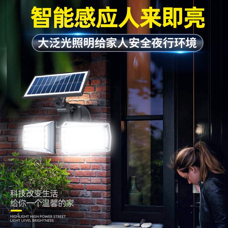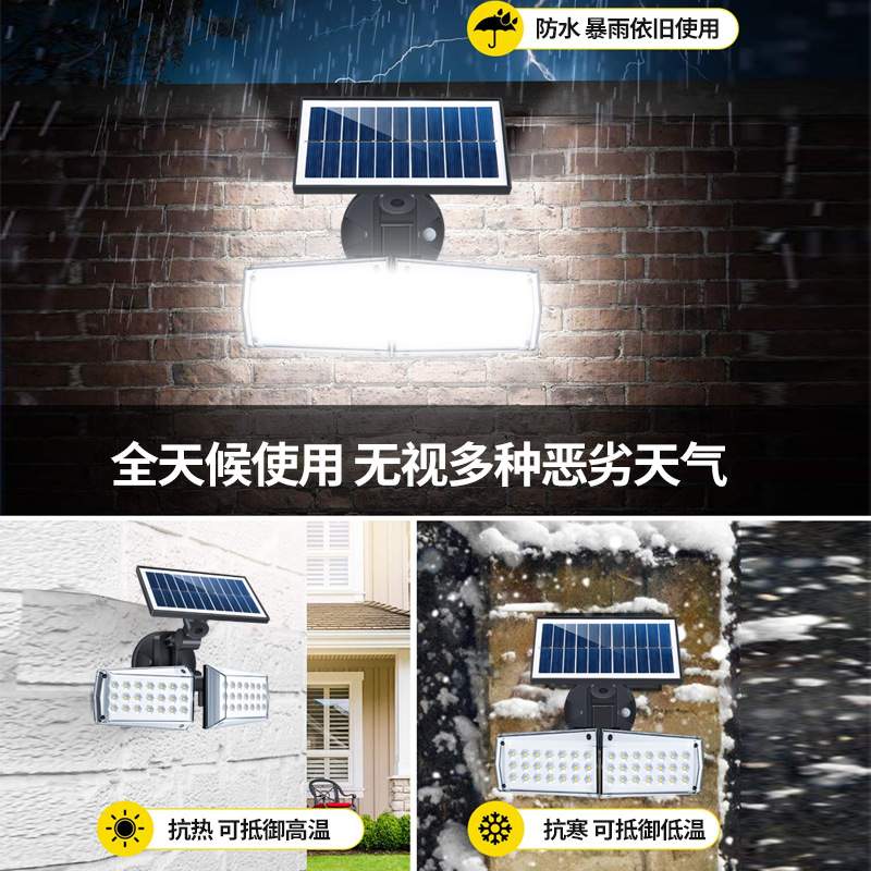 太阳能壁灯微波人体感应双头可旋转家用庭院防水路灯太阳能感应