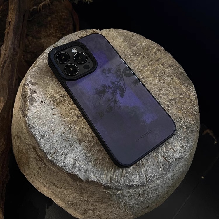 叶菽原创定制《紫影》侘寂新中式国风小众高级感液态玻璃镜面适用苹果16/17/13/14/15promax不会撞壳的手机壳