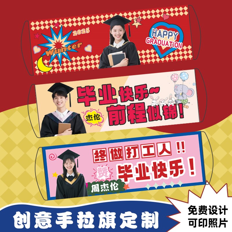 毕业手幅定制研究生大学校典礼手拿手举旗帜旗子设计初高中考生日