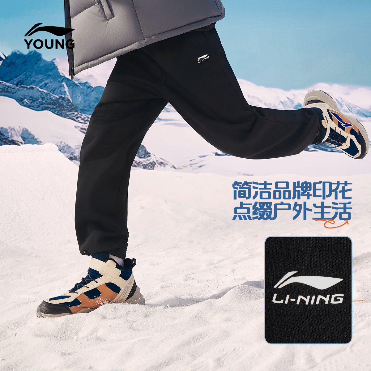 李宁童装卫裤男大童2025新款冬季加绒保暖休闲束脚针织童装
