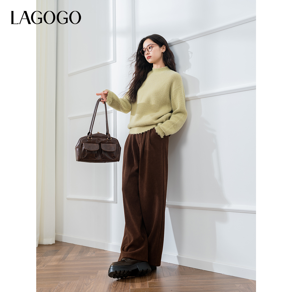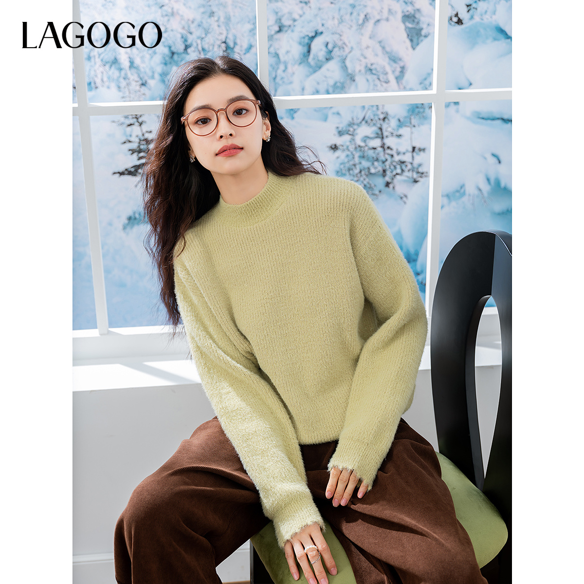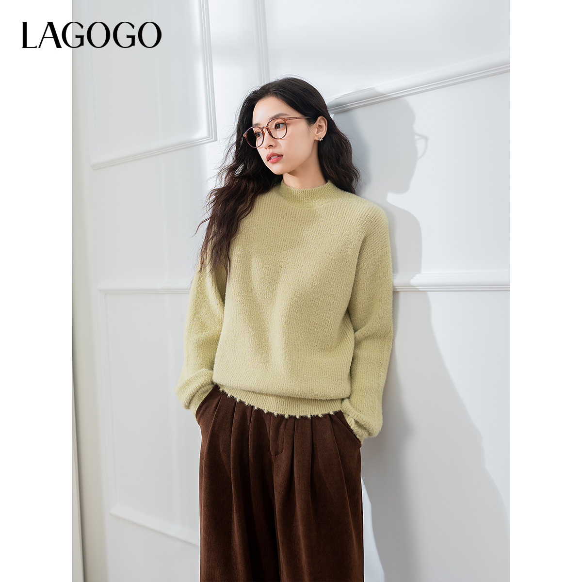 【抗起球】LAGOGO半高领毛衣女拉谷谷冬季新款慵懒风针织衫