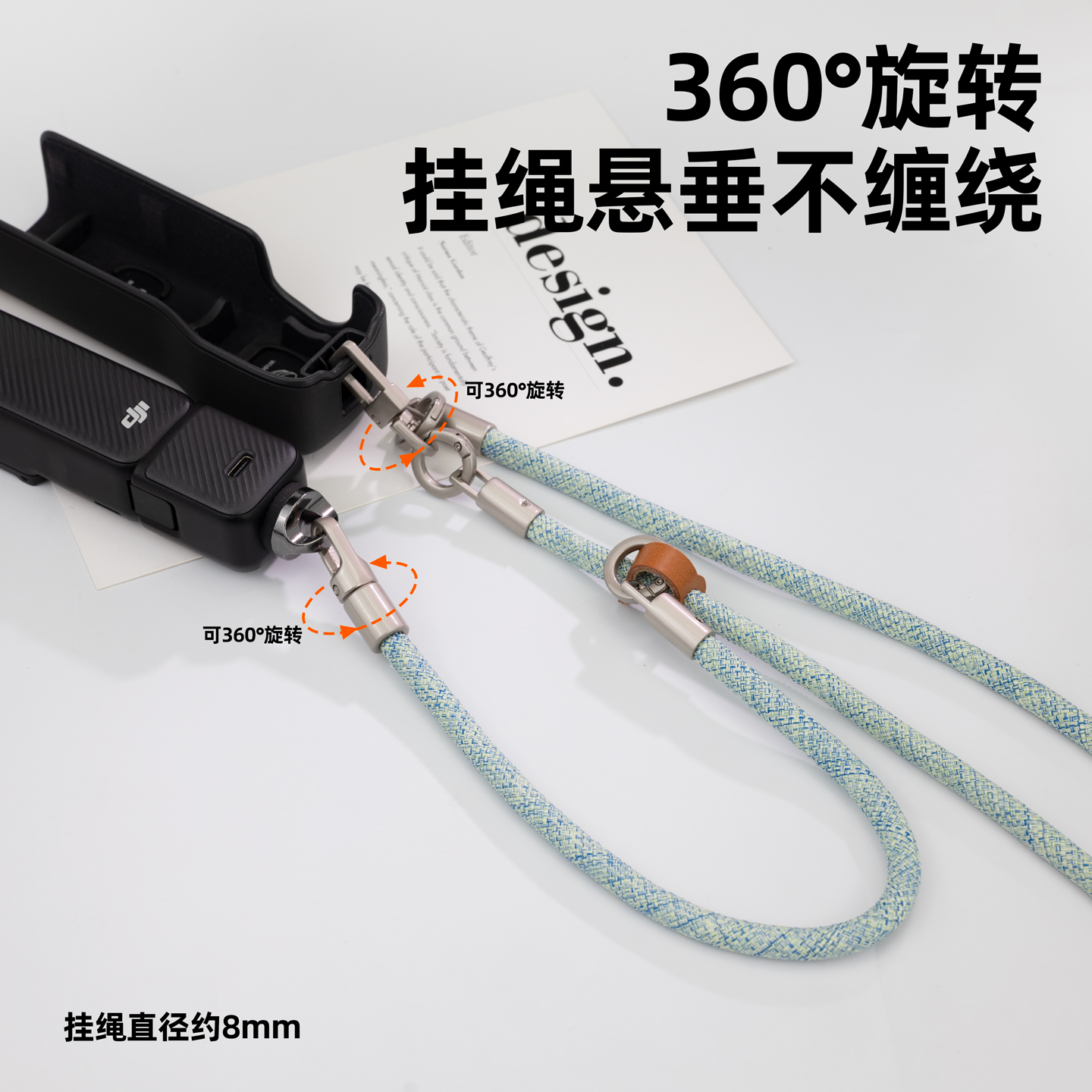 适用大疆 DJI pocket3便捷斜挎可背运动相机配件挂绳长短可调节挂脖口袋3多功能二合一伸缩双扣防丢绳手腕