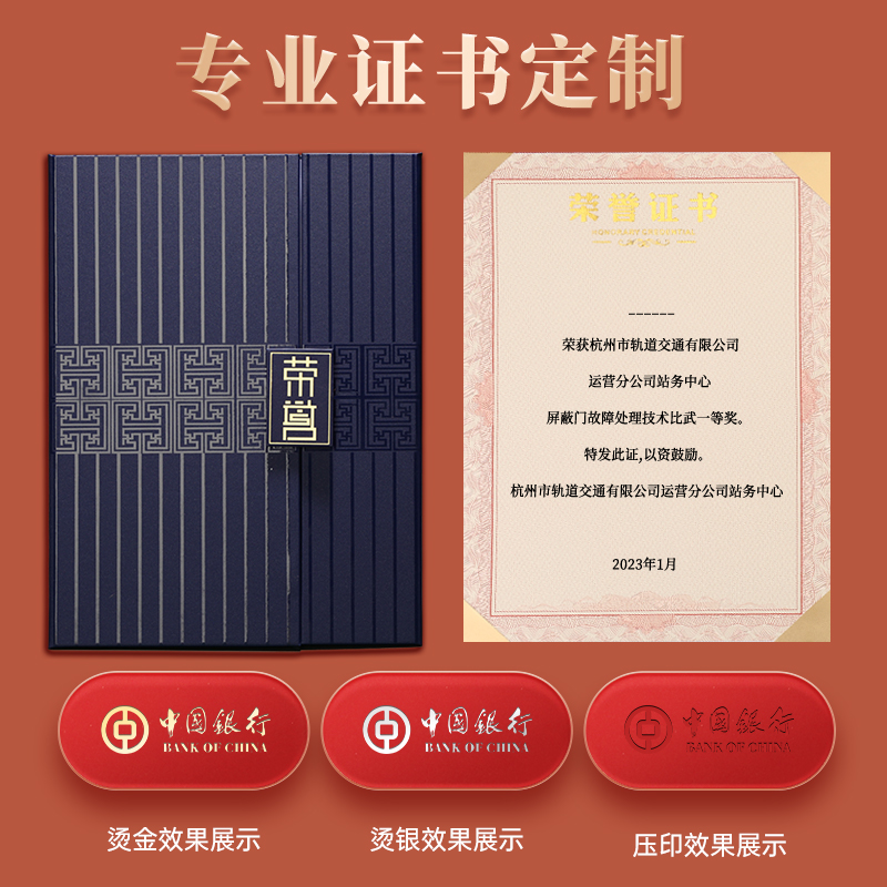 荣誉证书定制烫金珠光纸结业证书A4奖状定制证书外壳中国风聘书定制可印logo优秀员工颁奖奖状制作免费打印