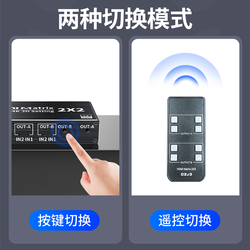 优联hdmi矩阵切换器二进二出带音频分离2进2出分频切换器4K60HZ两口显示不同画面配遥控5.1声道分配器一分二