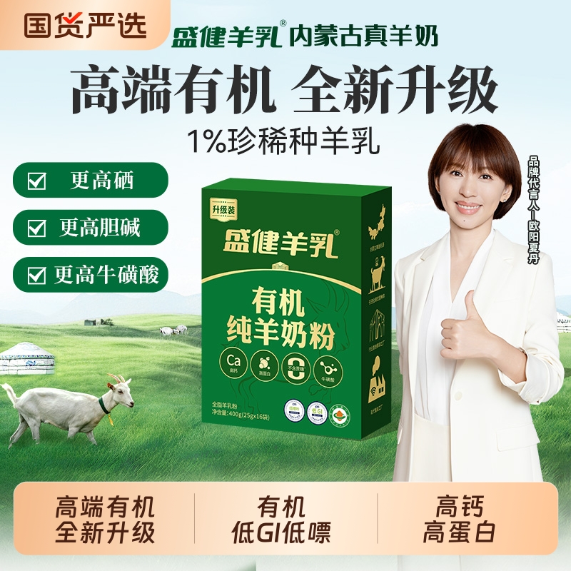 盛健有机纯羊奶粉装400g/盒中老年成人儿童女生营养健康羊乳粉
