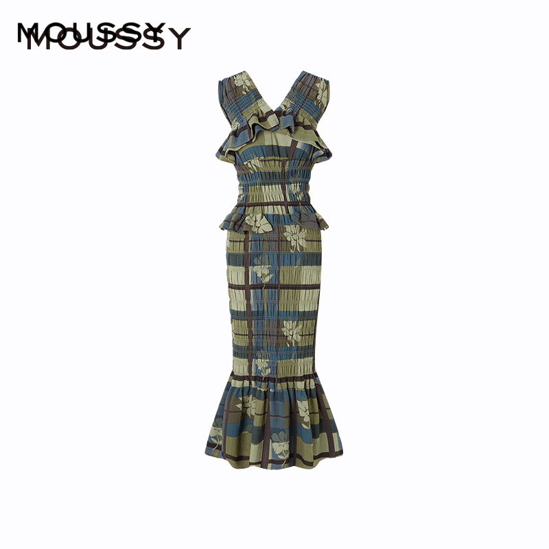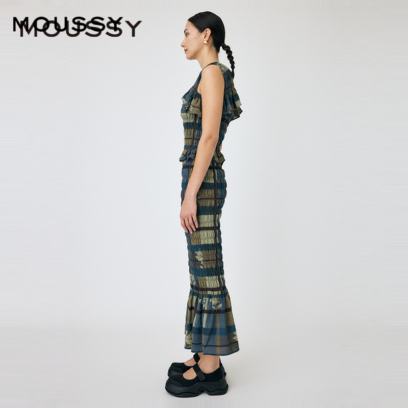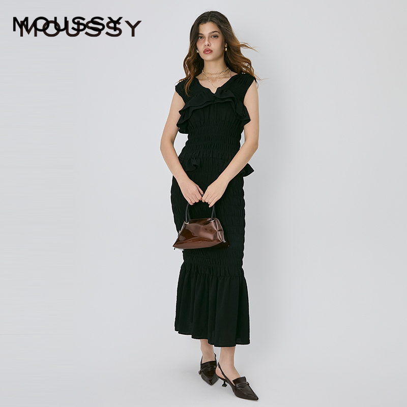 moussy 2024秋季新品法式设计感荷叶边重工连衣裙女010HAH33-5061