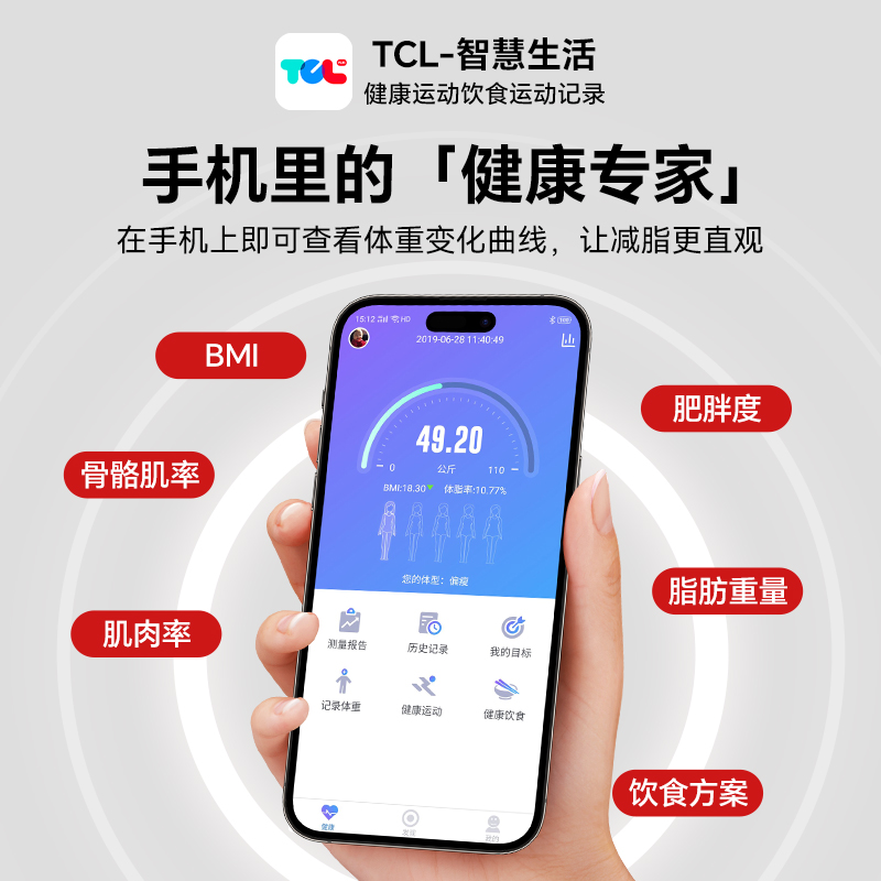 TCL光能体重秤体脂秤家用精准充电子秤减肥专用人体秤标准称体重