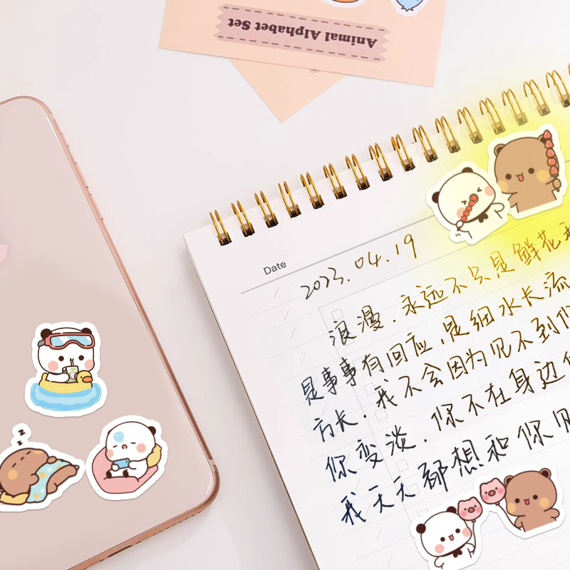 小熊猫一二和布布表情包贴纸可爱卡通创意手账桌面水杯防水小贴画