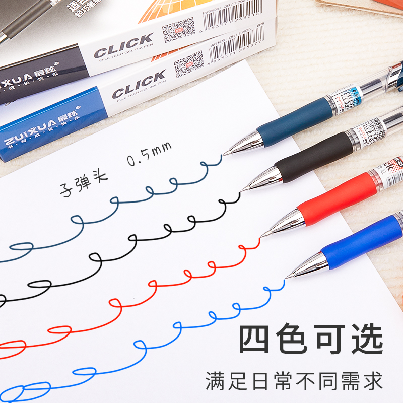 按动中性笔简约水性签字笔芯0.5mm按压式蓝黑红笔水笔教师办