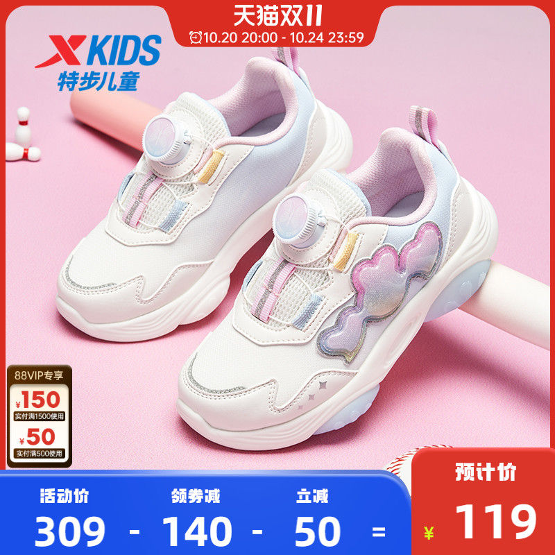 特步儿童2025新款春秋款皮面女童鞋旋转钮扣女孩宝宝休闲运动鞋子