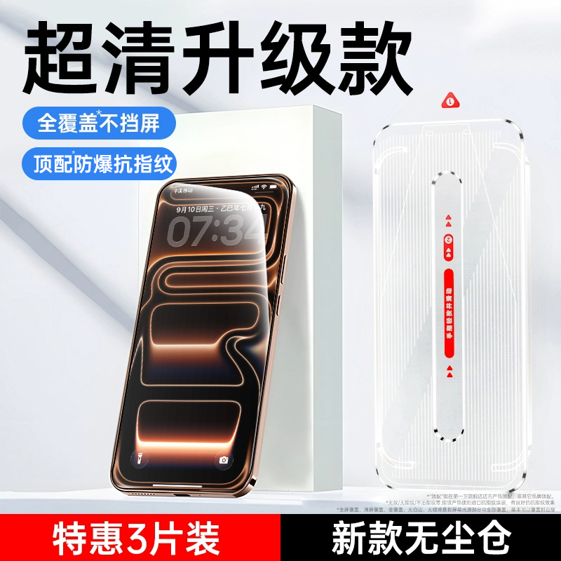 图拉斯无界膜AR抗反射适用苹果17钢化膜iPhone17promax手机贴膜16pro无黑边防摔保护15屏幕无尘仓ip防指纹ar
