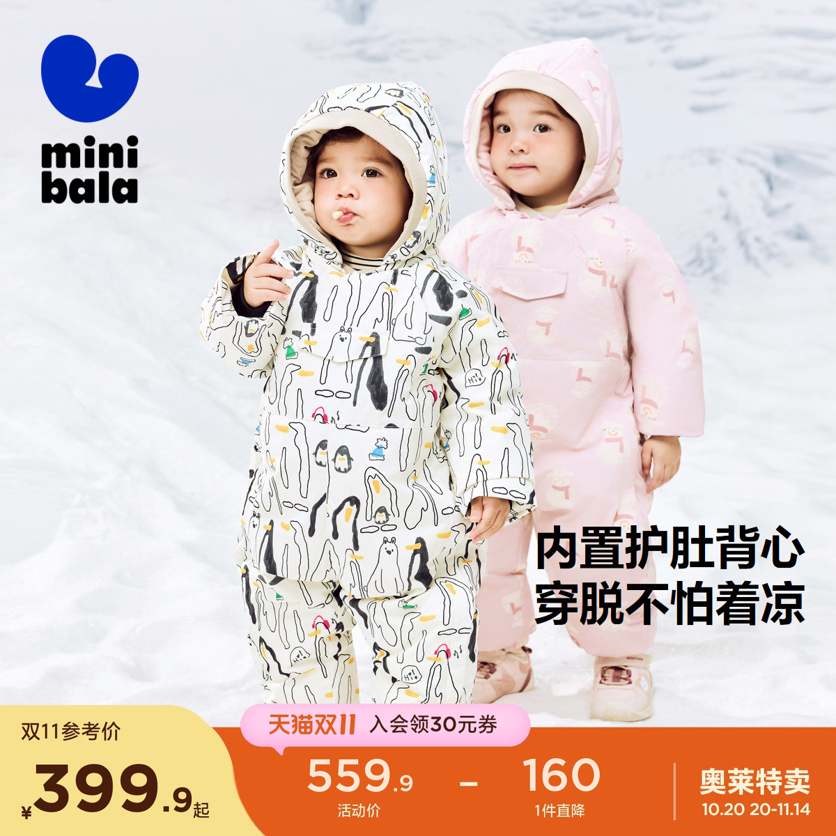迷你巴拉巴拉羽绒服连体衣男女童防水防油污双开拉链护肚背心