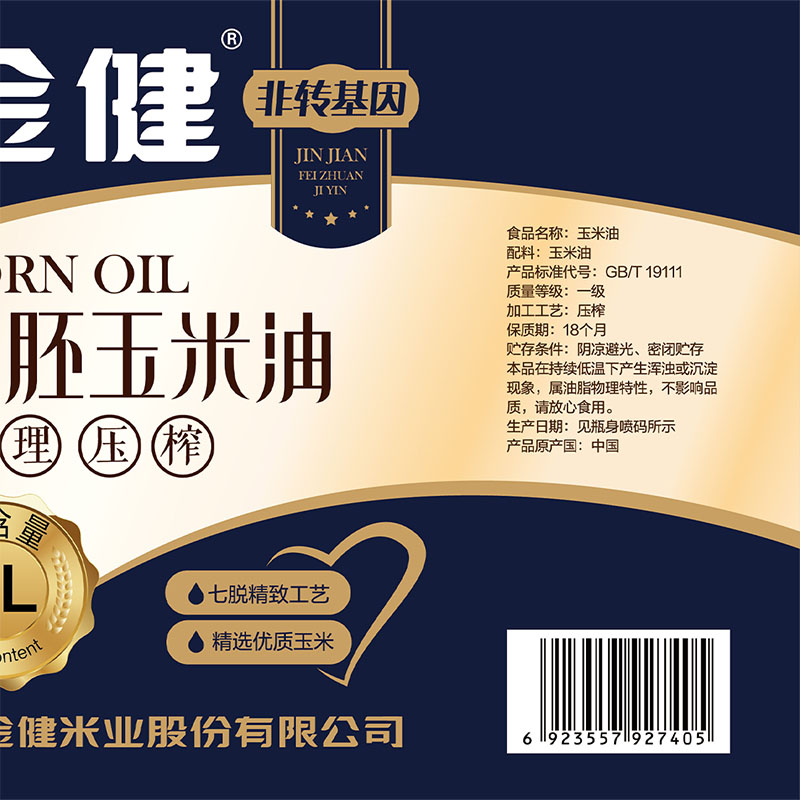 金健鲜胚玉米油5L大桶非转基因压榨健康营养少油腻源头直发家用