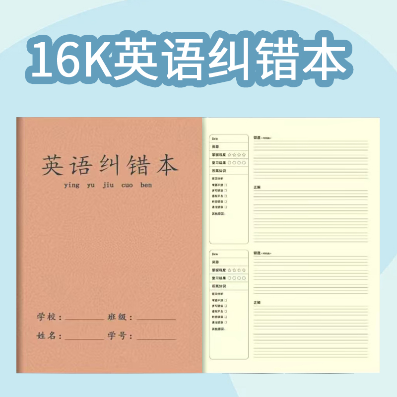 16开加厚牛皮英语纠错本分区设计中小学生专用课堂错题更正笔记本
