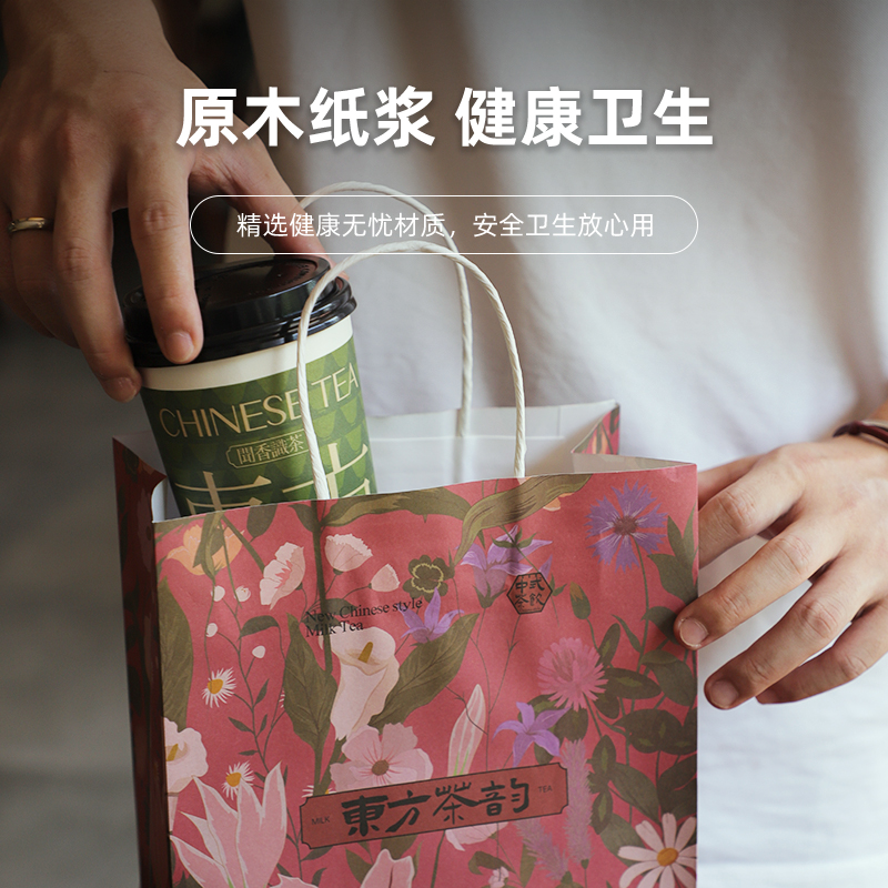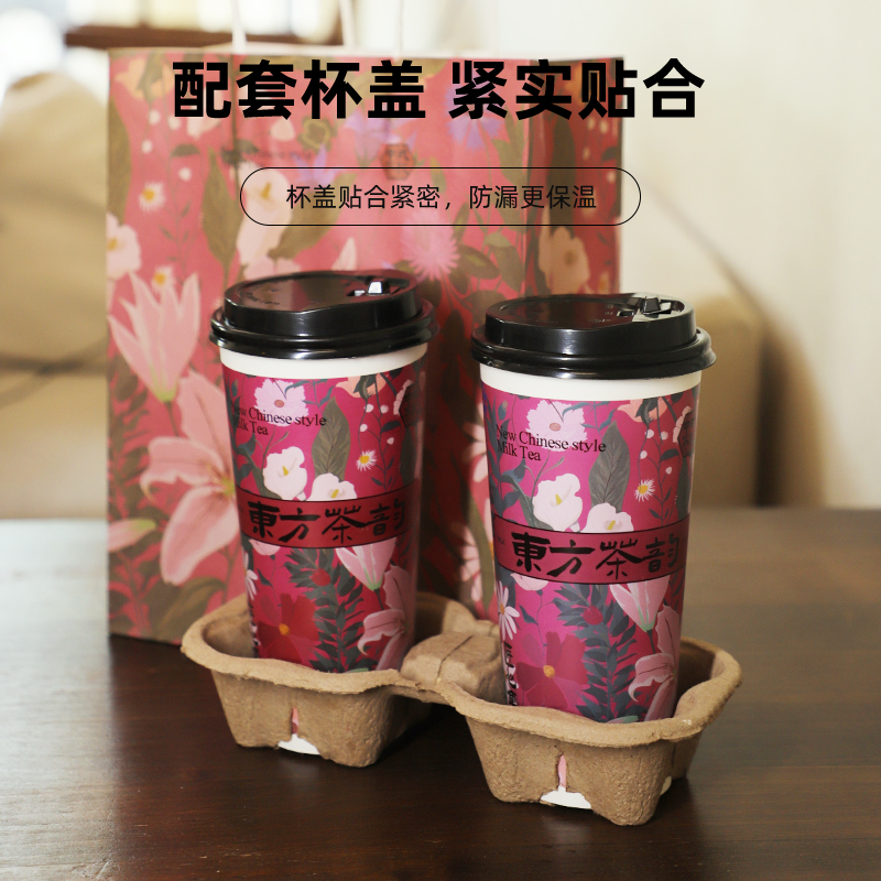 加厚奶茶杯子一次性带盖中国风奶茶店专用打包冷热饮纸杯咖啡双层