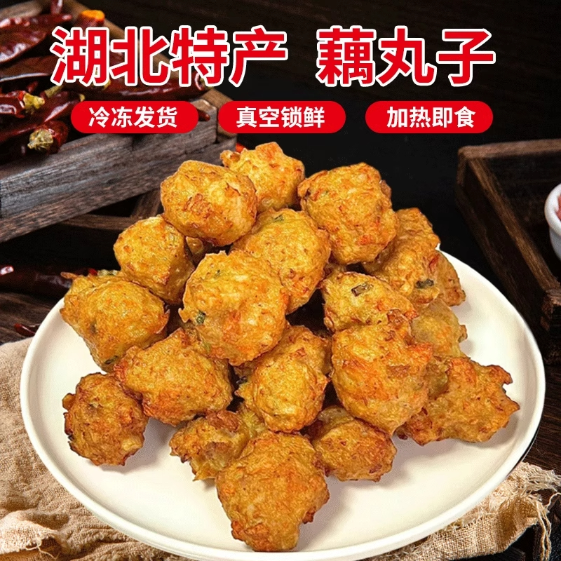 正宗藕丸子湖北特产农家脆藕手工炸藕圆藕夹油炸特色美食冷冻