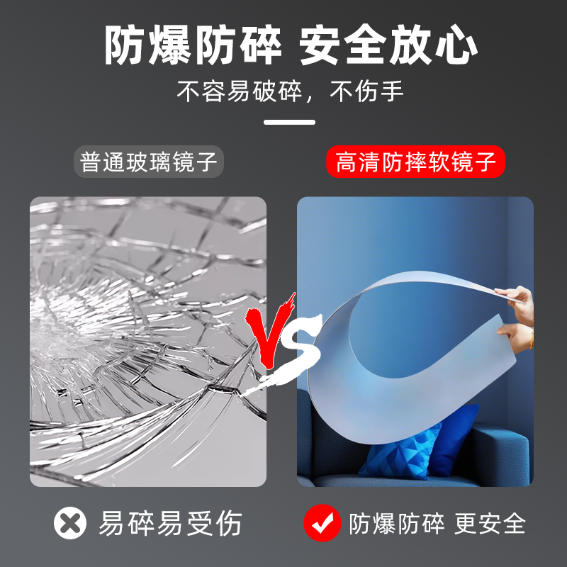 亚克力软镜子粘贴穿衣镜全身自粘贴墙家用试衣镜镜面镜片墙贴高清