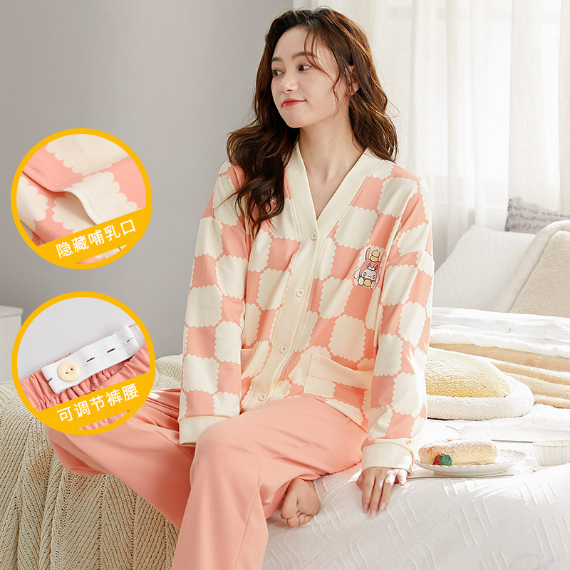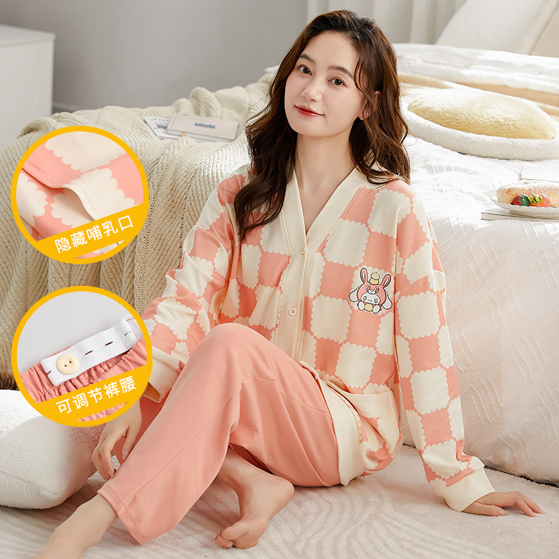 高级感秋冬开衫和服款月子服长袖喂奶衣女大码哺乳衣外出睡衣孕期