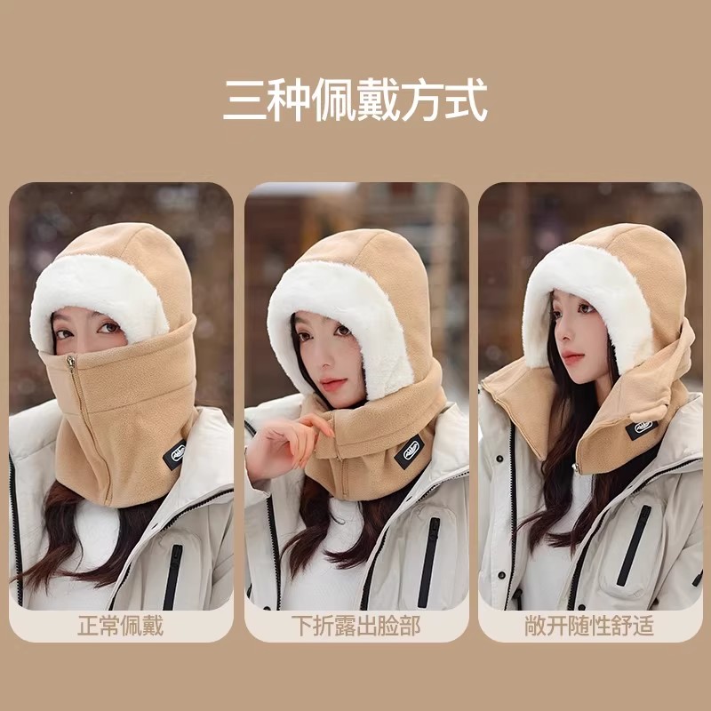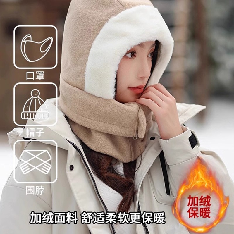 冬季加绒保暖骑行帽女电动车防风防寒面罩头盔围脖一体帽子男骑车