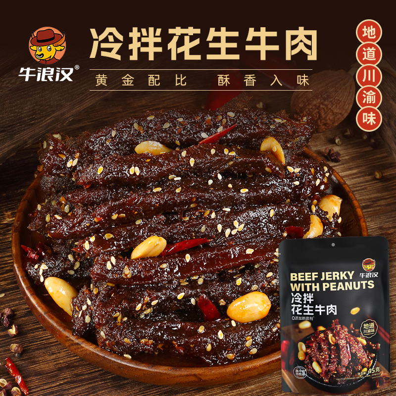 牛浪汉冷拌花生牛肉干四川重庆特产真牛肉条冷吃麻辣牛肉即食零食