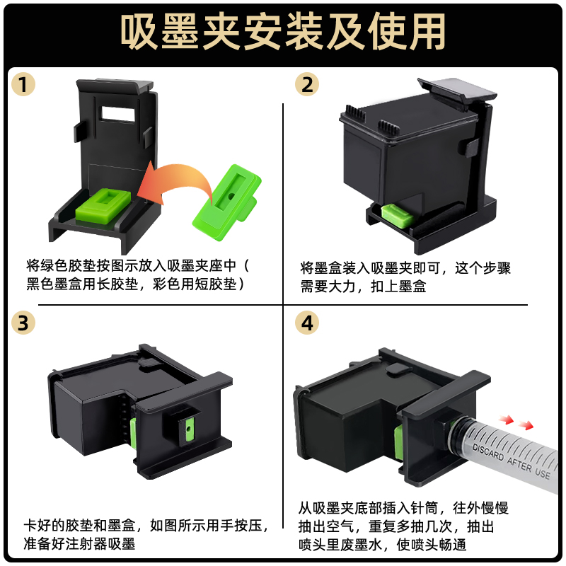 彩虹树适用惠普吸墨夹803 804 802 680 805 682 305 62 63 65 67 47 123 678墨盒排空气疏通喷头黑彩色套装