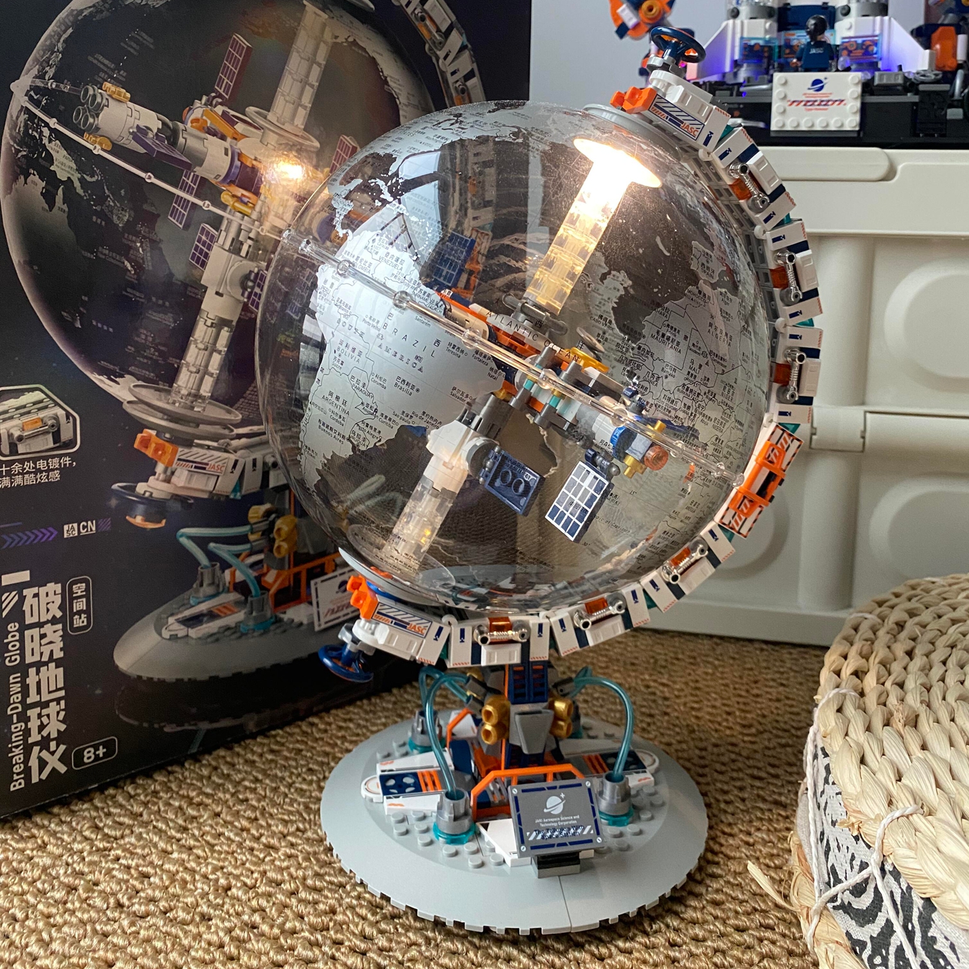 赛博破晓地球仪积木全透视科技感摆件男孩小学生生日礼物10岁拼装