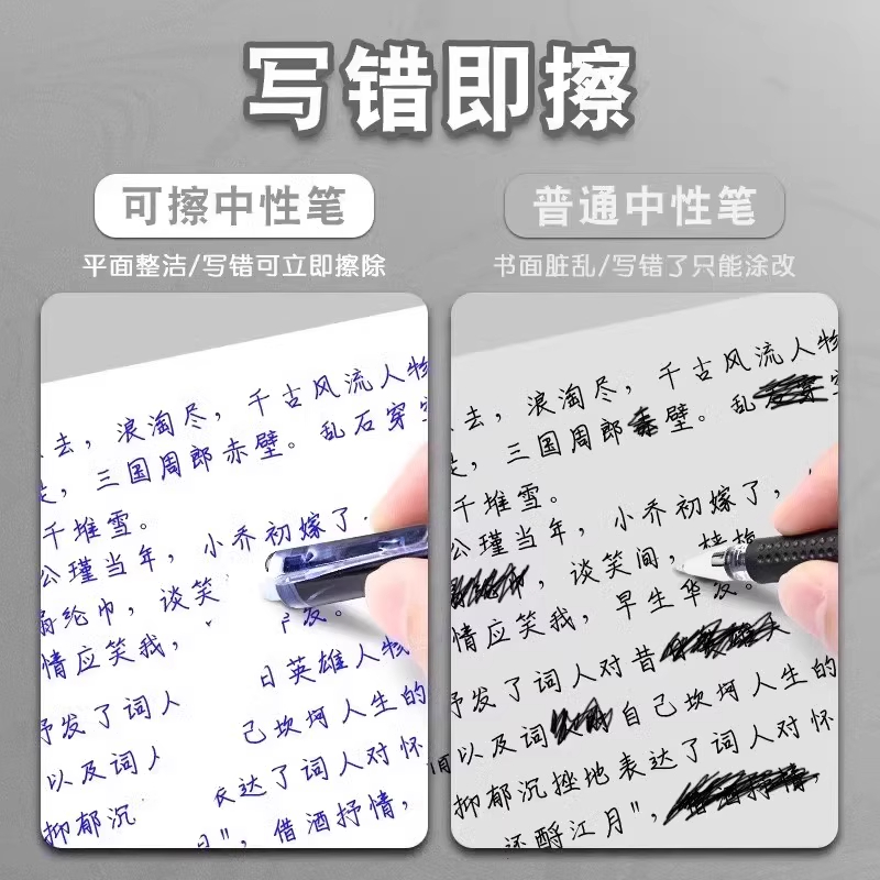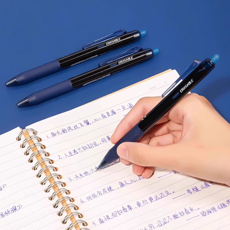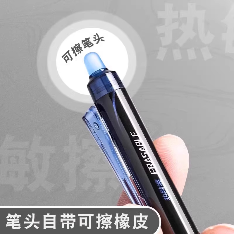 得力按动可擦笔学生专用黑色可擦拭中性笔笔芯三年级摩易擦笔晶蓝
