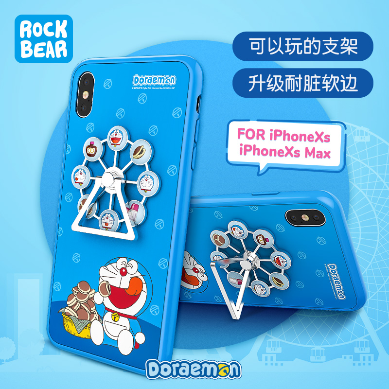 ROCK哆啦A梦苹果x手机壳xs支架适用iPhone xsmax卡通X全包7plus防摔8plus男xr女se2网红6plus情侣6sp潮保护套