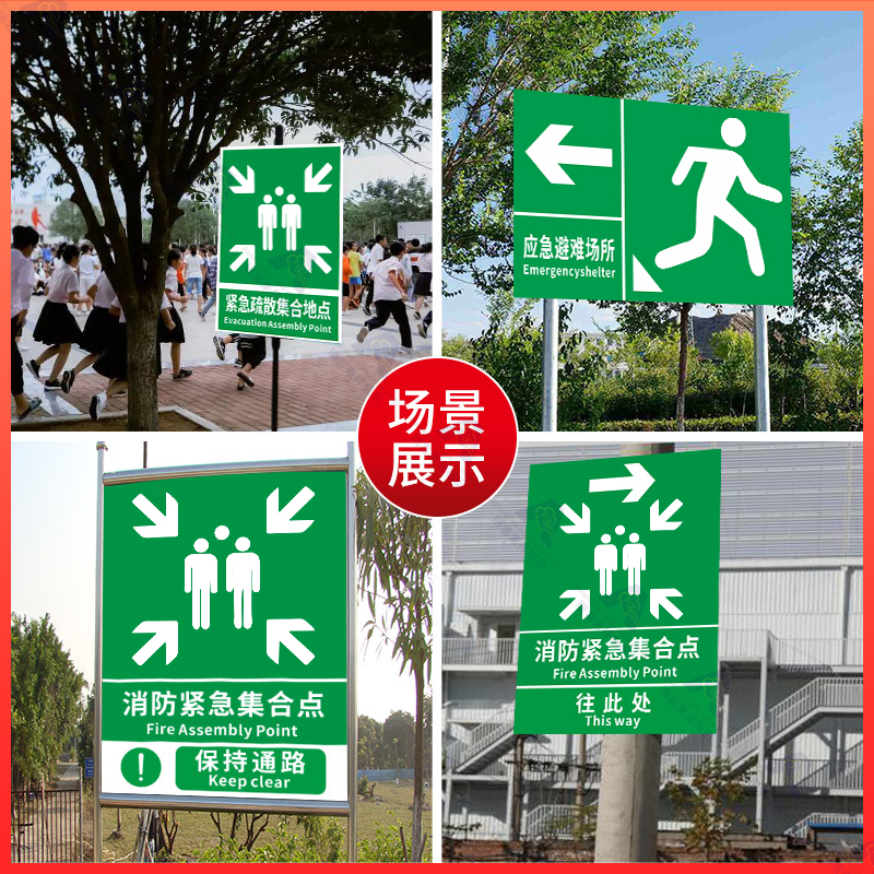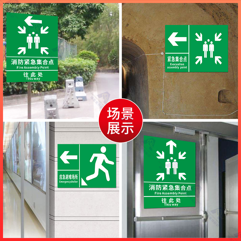 应急避难场所间指示牌紧急疏散集合点标识避险安全逃生标志提示墙贴纸消防标示标牌警急撤离警告标贴线路定制