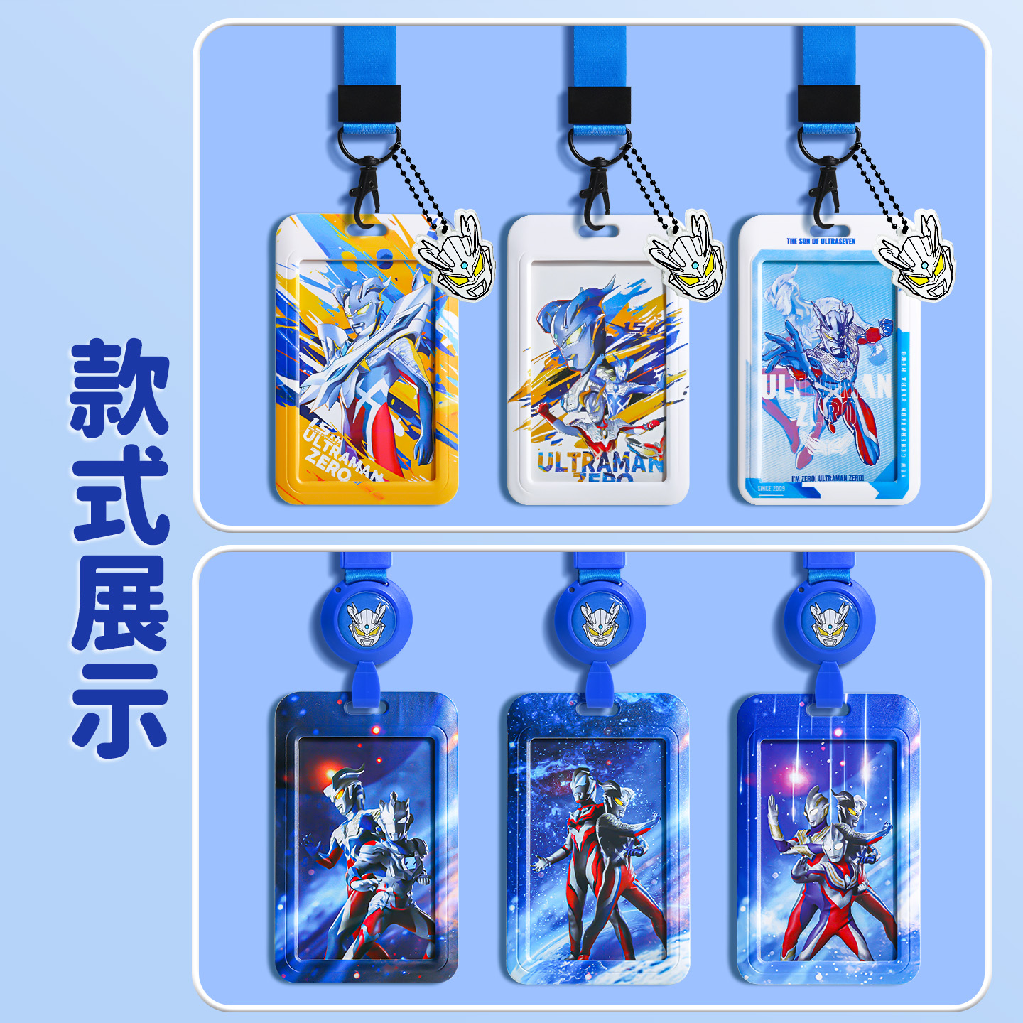 奥特曼卡套幼儿园接送卡保护套学生校园卡饭卡公交卡挂绳伸缩易拉扣证件防丢校牌儿童挂脖身份证学生证硬卡套