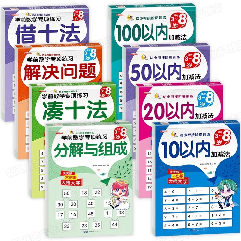 10 20 50 100以内加减法全套8册 凑十法借十法幼小衔接数学专项综合练习册解决问题分解与组成口算题卡幼儿园大班一日一练数学启蒙