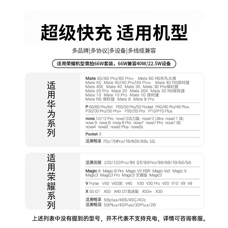 【国家3C认证】senhomtog120w快充适用华为荣耀充电器手机原装66充电头Mate60pro40/nova5/6/7/8/9数据线套装