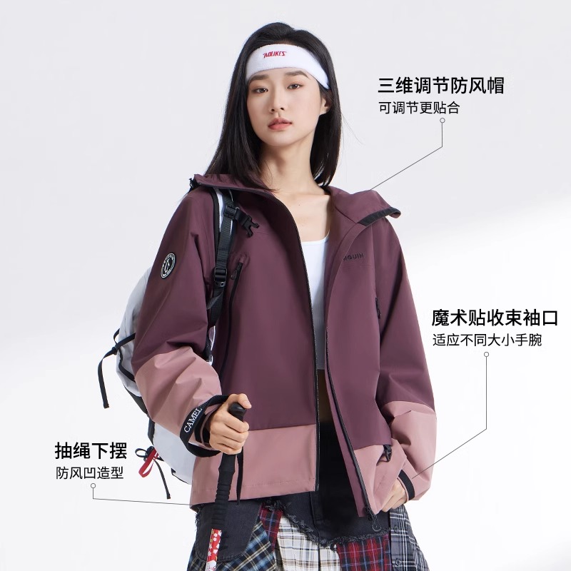 骆驼女装单层冲锋衣2025秋冬新款户外防风防水连帽立领男女款外套