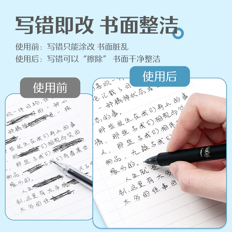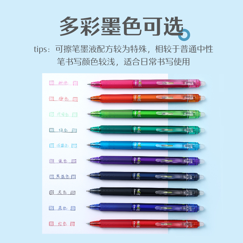 日本pilot百乐可擦笔小学生用三年级可擦中性笔frixion热可擦蓝色用专笔芯黑色可擦笔23EF高颜值0.5mm蓝黑色