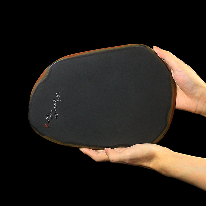 【孤品 一物一拍】 国家非遗传人 方学斌砚台《 一杯茶品尽人生沉浮》高档原石砚台 歙砚茶盘文房四宝 YT6108