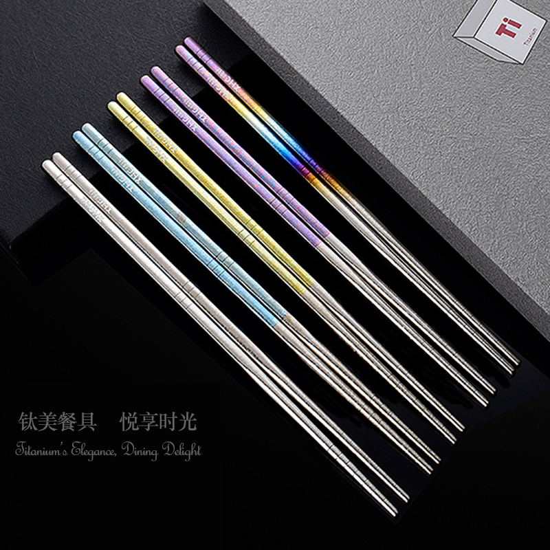 2025年纯钛结晶筷子5色家用一人一双抑菌防霉轻便耐用礼盒套装