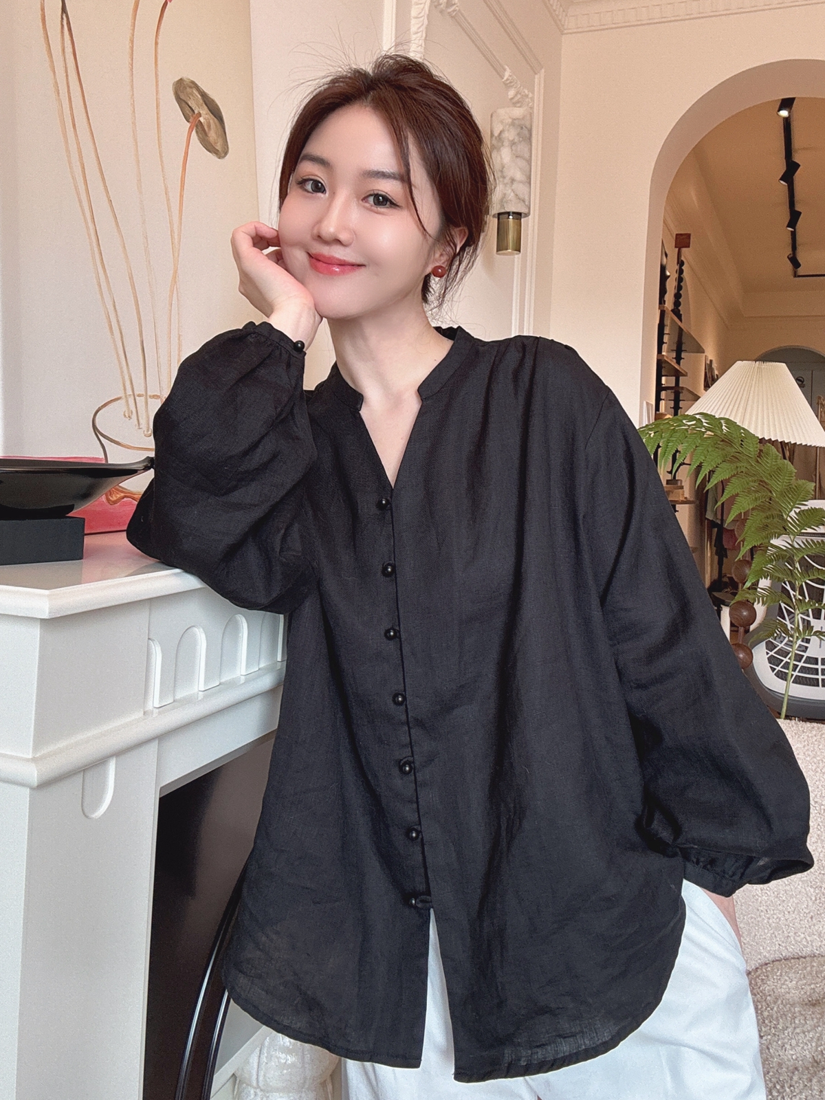 MANMANS温润如玉 纯亚麻新中式衬衫气质显瘦宽松麻衬衣春夏女