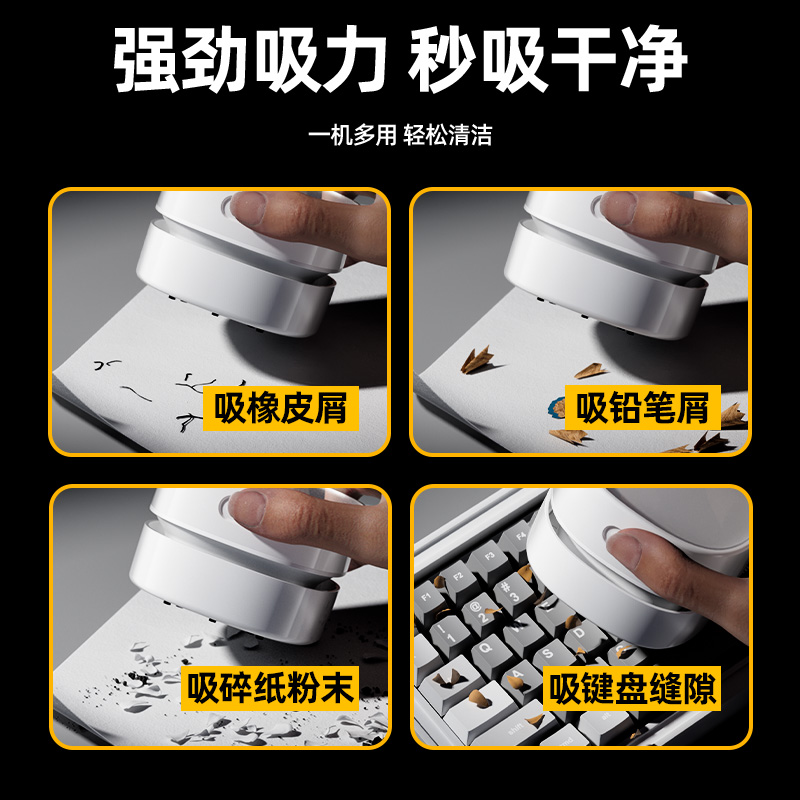 桌面吸尘器大吸力学生小型迷你手持电动吸橡皮擦屑机充电款书桌自动清理吸灰尘键盘清洁器儿童铅笔屑清理神器