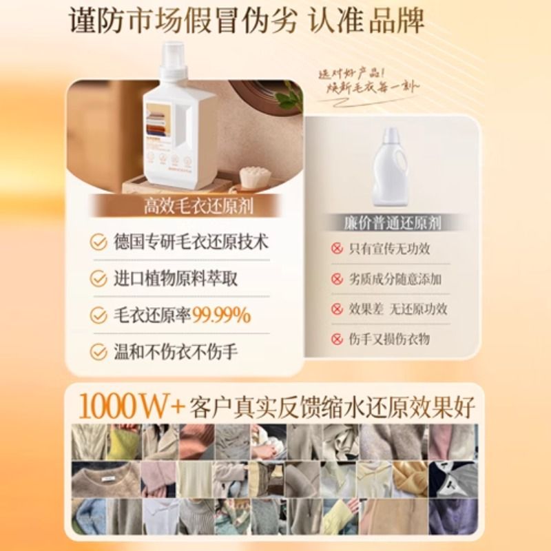 羊毛衫缩水还原恢复剂放大蓬松修复毛衣羊绒毛呢衣服纺织物洗涤剂