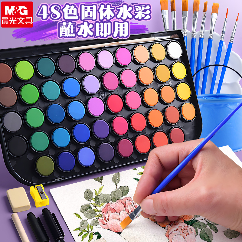 晨光固体水彩颜料套装全套水粉颜料水彩画美术固体水粉初学者绘画小学生专用水彩固体颜料盒儿童画画颜料36色