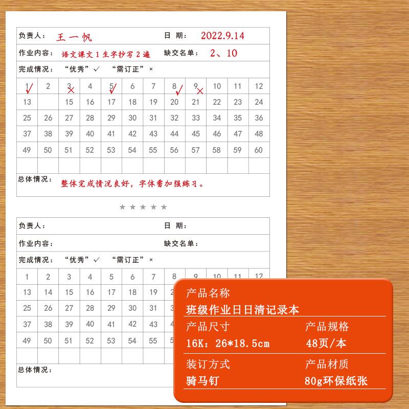 班级交作业作业数学英语情况日日清记录本初中适合小学语文完成等
