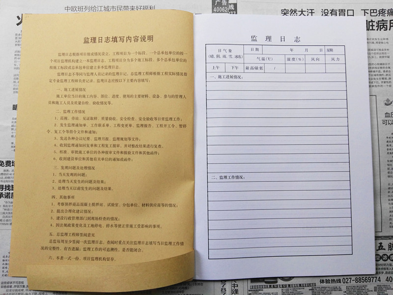 监理日志本新版监理规范用表通用监管施工日记建筑工程安全监理本