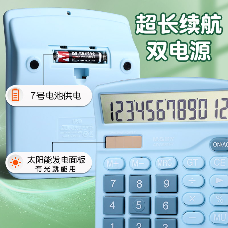 晨光小学生计算器四年级学生专用无语音儿童小型款可爱计算机器办公商用女神款会计财务太阳能带电池双电源款