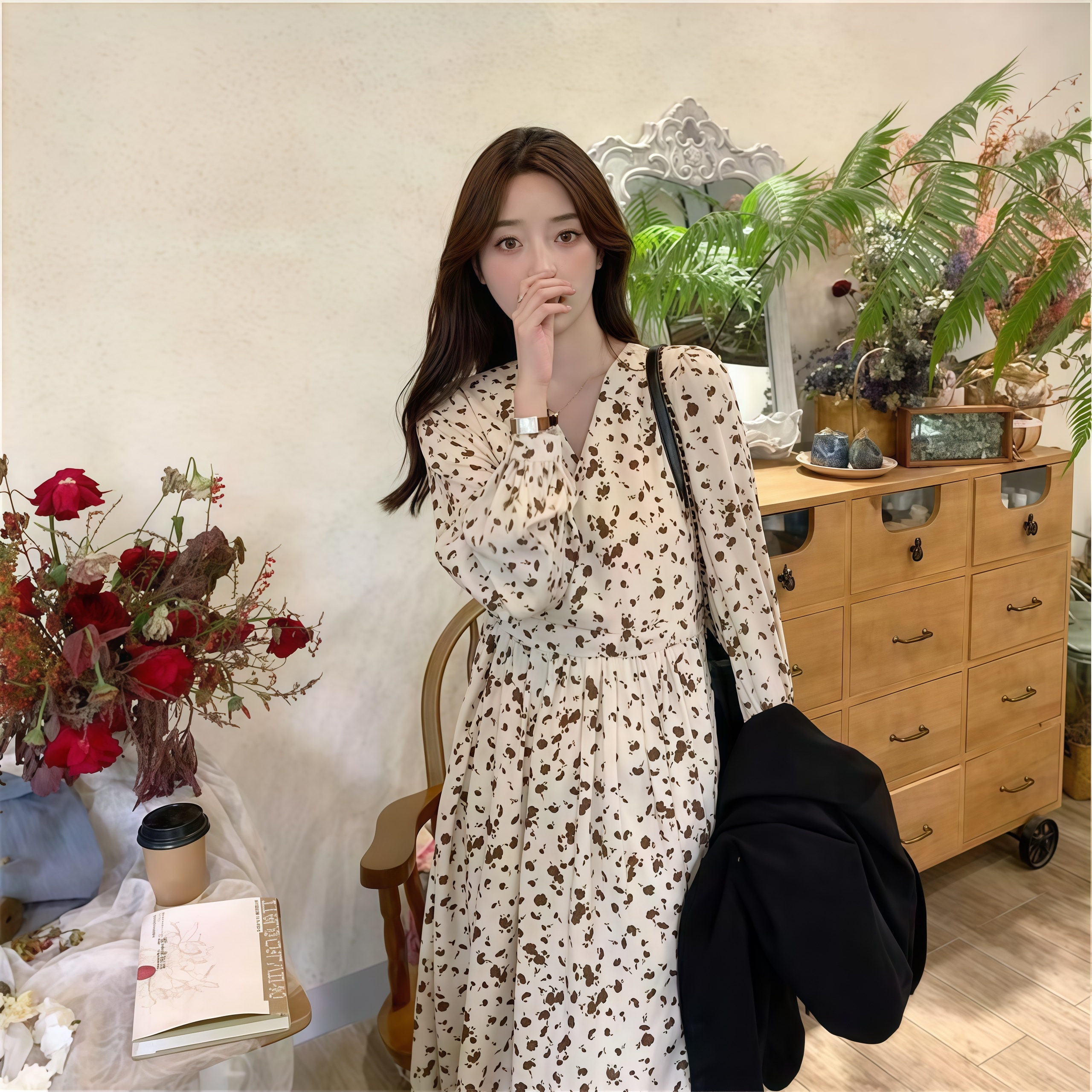 FY法式甜美温柔风连衣裙小众不规则小个子气质收腰显瘦秋季