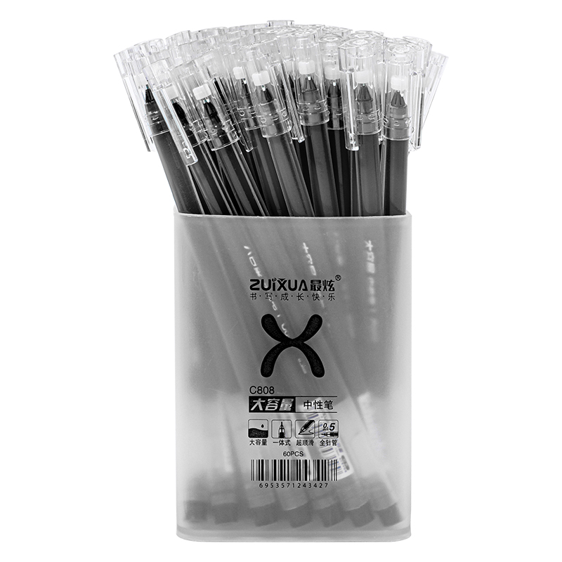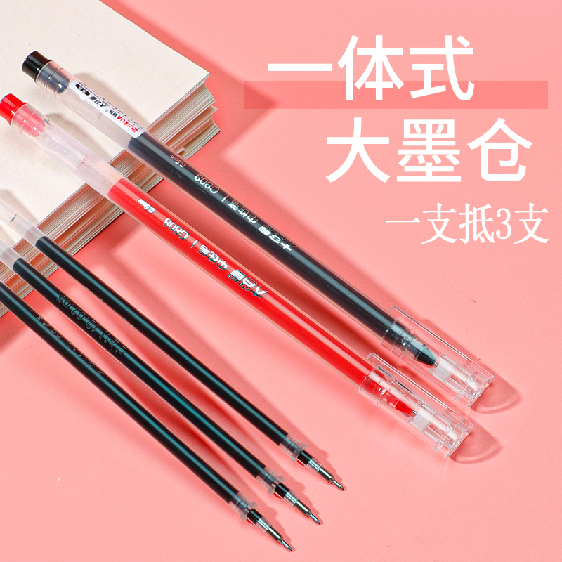 最炫中性笔0.5黑色拔帽式巨能写红色大容量学生针管头写字笔批发
