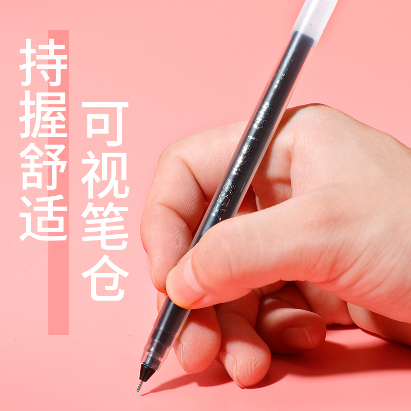 得力直液式走珠笔速干大容量直液笔0.5黑色中性笔学生用速干刷题笔水性笔直液笔圆珠笔商务办公简约风笔杆