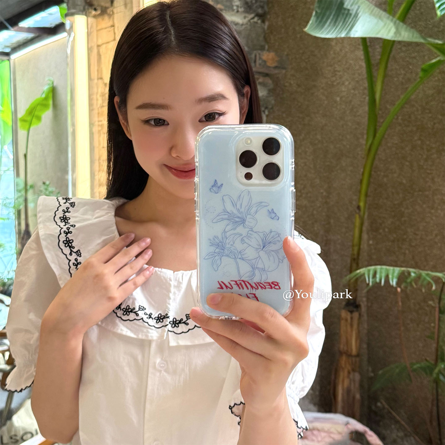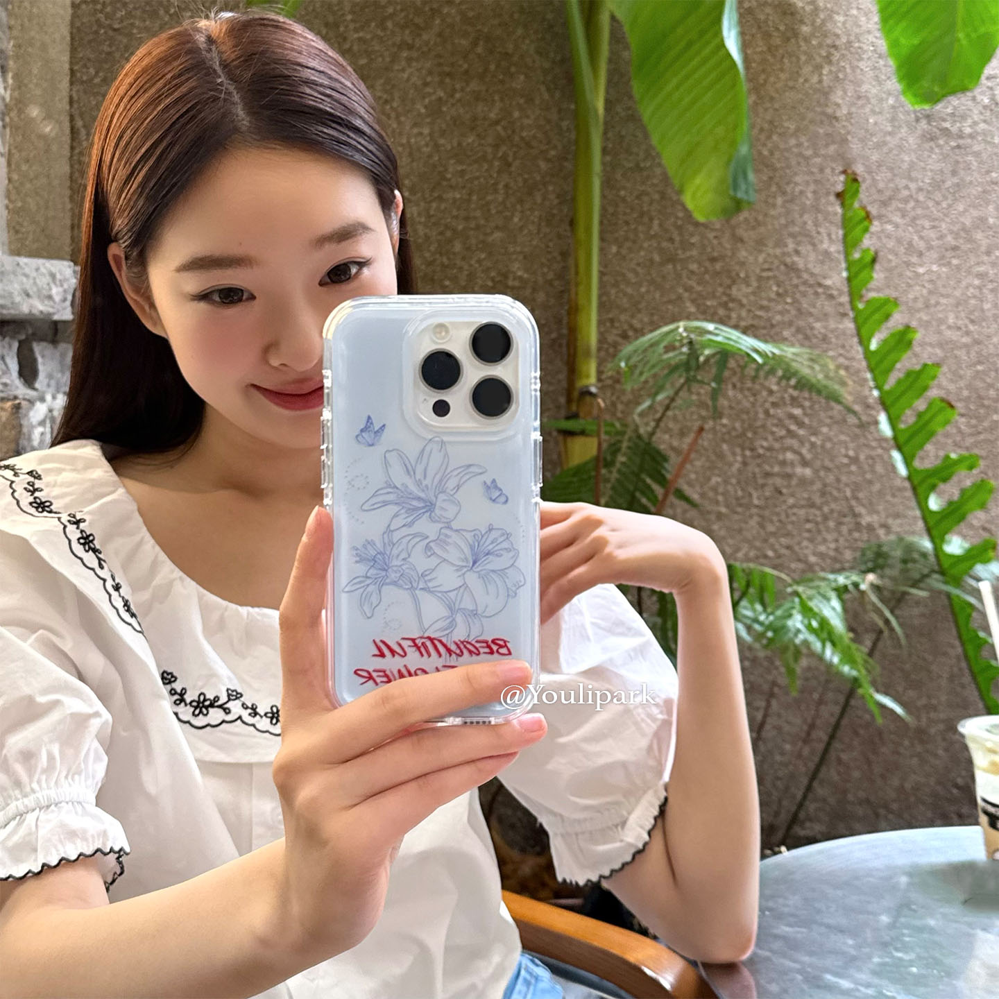 由里公园ins小众清新淡雅蓝素描线条花朵15适用16pro苹果16ProMax手机壳iPhone16全包14新款14Promax保护套女