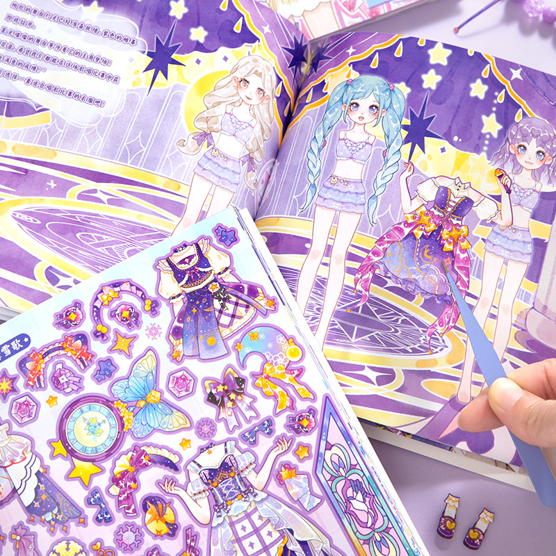 免剪裁无白边可反复黏贴少女心换装贴纸本益智动脑DIY3456789岁女孩生日礼物换衣服游戏手账咕卡咕盘装饰贴画