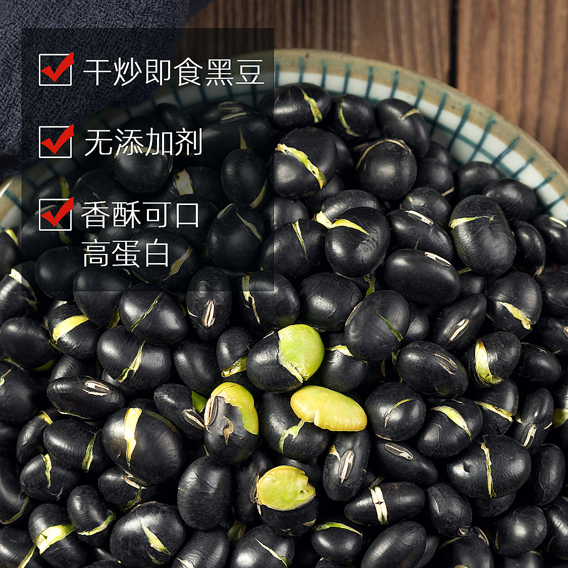 盐味烘烤黑豆高蛋白香酥脆零食健康休闲美味绿芯黑豆营养丰富低脂