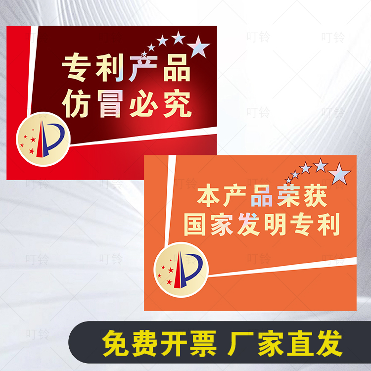 专利产品仿冒必究外观专利技术专利机械产品防伪标签警告警示标志标识定制
